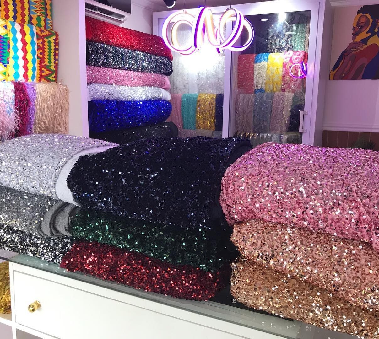 Bridal Lace, Designer Lace, Beaded Lace, Ombre Lace, Tulle, Suede Cord Lace, Border Lace, Brocade, Organza, Chiffon, Silk, Satin, Cashmere, Linen/Wool, Massimo, Ankara/Ntoma, African Prints, Kaftan Fabrics, Suit Fabrics, Appliqués, Sequins