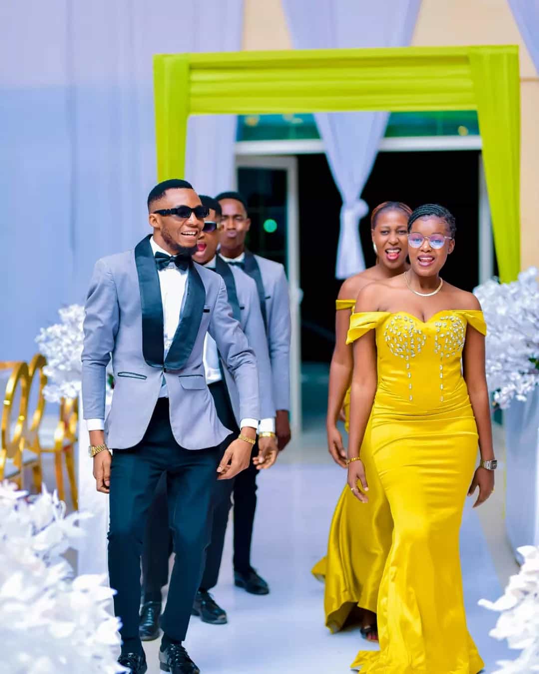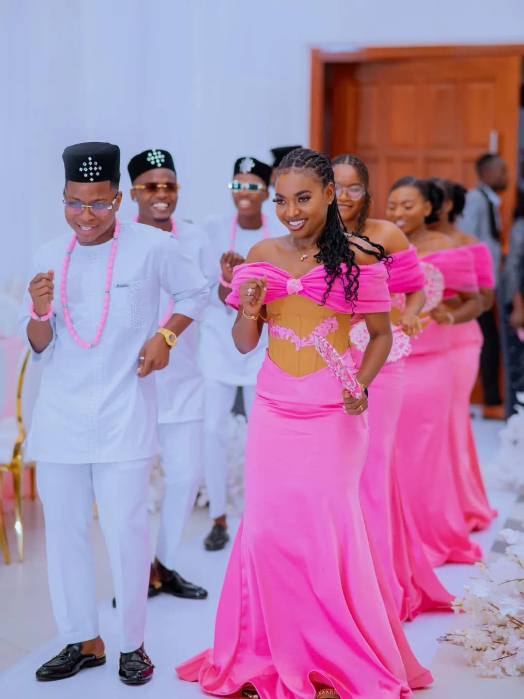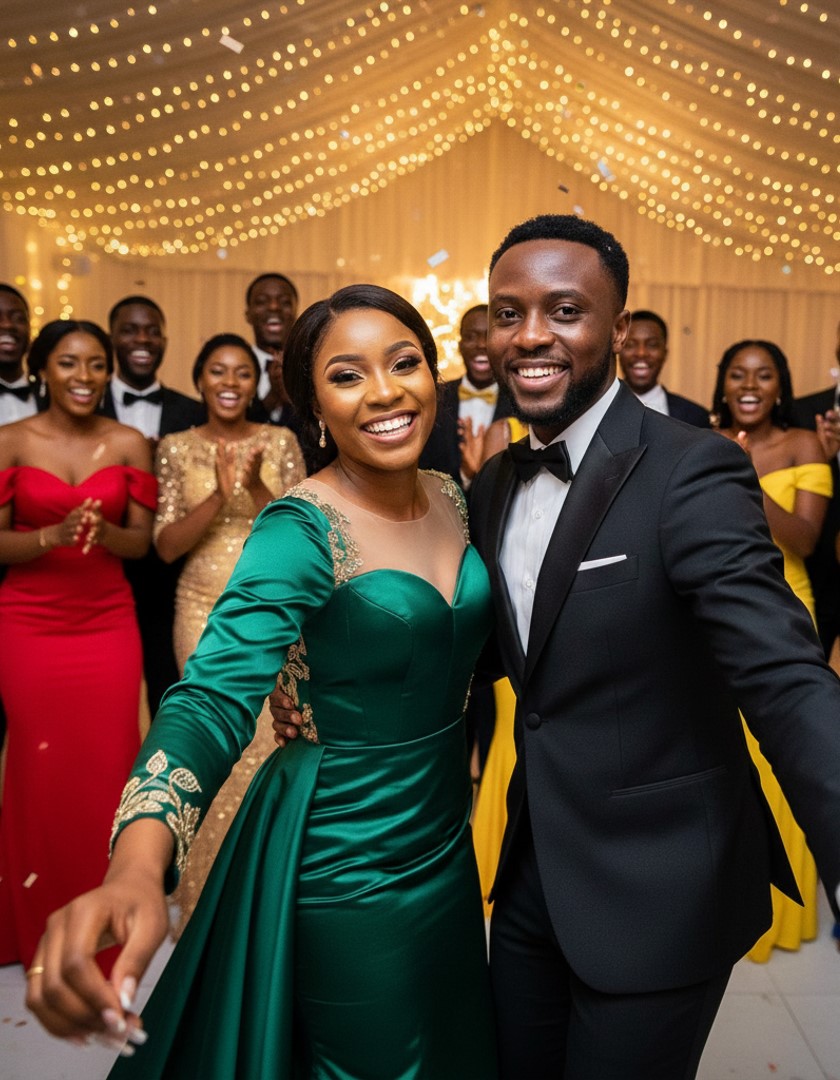 Formal traditional or elegant African attire. Soft, celebratory colours encouraged.